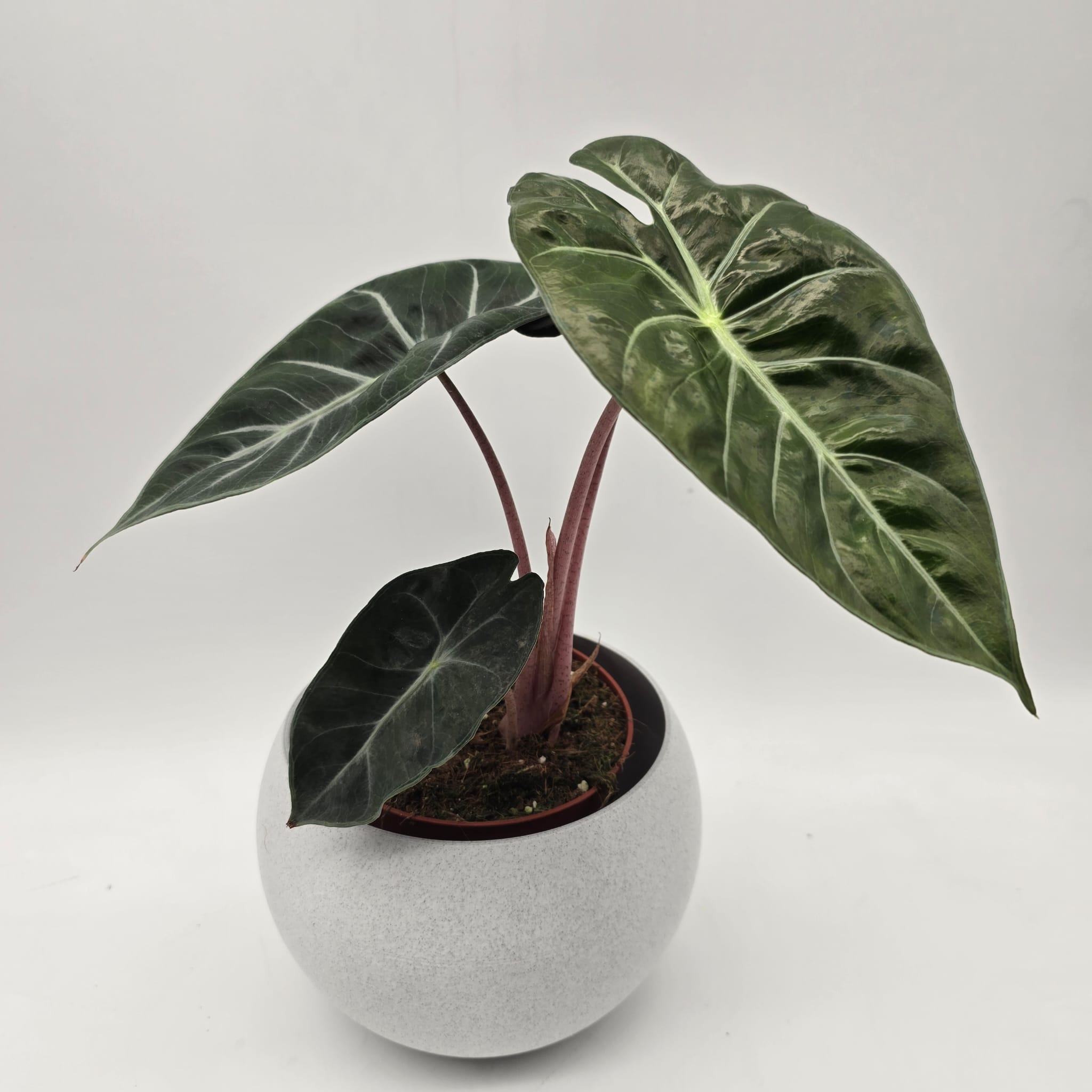 ALOCASIA PINK DRAGON navdušuje s kontrastom temno zelenih listov in nežno rožnatih stebel, kar jo naredi pravo pašo za oči. Ta tropska lepotica je popolna izbira za vse, ki želijo popestriti svoj notranji džungelski kotiček.