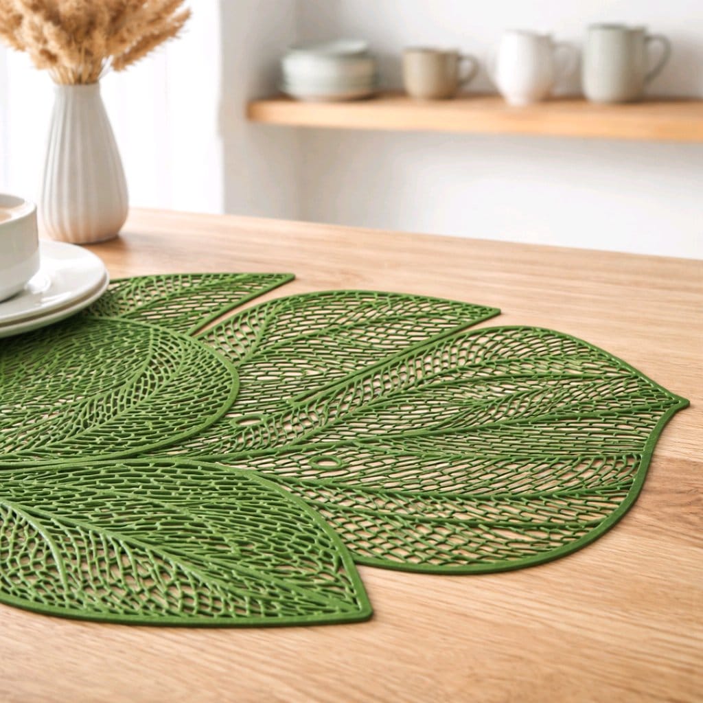 Komplet dveh PVC podstavkov v obliki lista Monstere prinaša naravni pridih v vaš dom. Podstavka sta vzdržljiva, enostavna za čiščenje in sta popolna dekoracija na vaši mizi. S svojim elegantnim dizajnom v obliki listov sta idealna kombinacija funkcionalnosti in estetike. 🌿